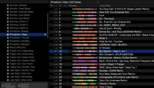 Una vez que tengas una idea clara de cómo te gusta seleccionar las pistas, mezclarlas y crear energía, te resultará más fácil decidir cuál es la mejor forma de organizar tu biblioteca de manera que te permita resaltar tu expresión artística. La idea de organizar las listas de reproducción con antelación es que fluyan de forma cómoda y fluida durante la actuación, a la vez que te dan libertad para elegir las canciones libremente durante tus actuaciones.