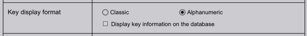 Formato de visualización de las teclas