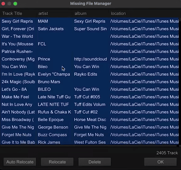 El proceso es muy rápido: Rekordbox puede reubicar cientos de archivos perdidos en cuestión de segundos en la mayoría de los ordenadores modernos.