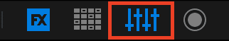 Además, el icono del mezclador de la barra de navegación debe estar seleccionado (se volverá azul) para que el mezclador Rekordbox sea visible entre los dos decks. El mezclador se utiliza para mezclar la música de ambos decks y crear una mezcla coherente.