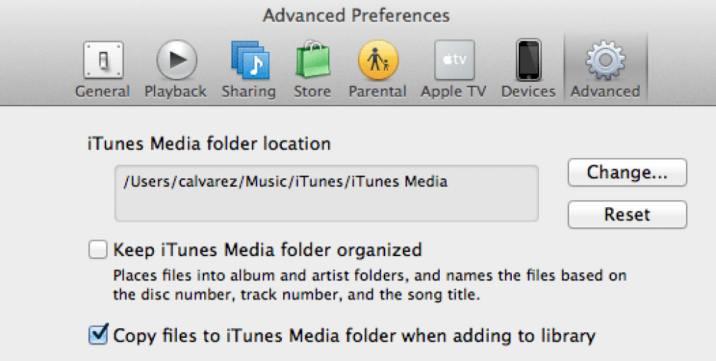 • Configura iTunes para que copie todas las canciones en la biblioteca al importarlas