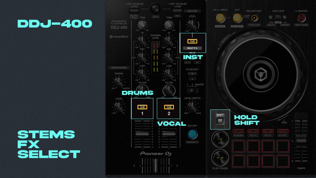- Mantener Mayús + Master Cue – Inst FX (DDJ-400, DDJ-800, DDJ-FLX4)