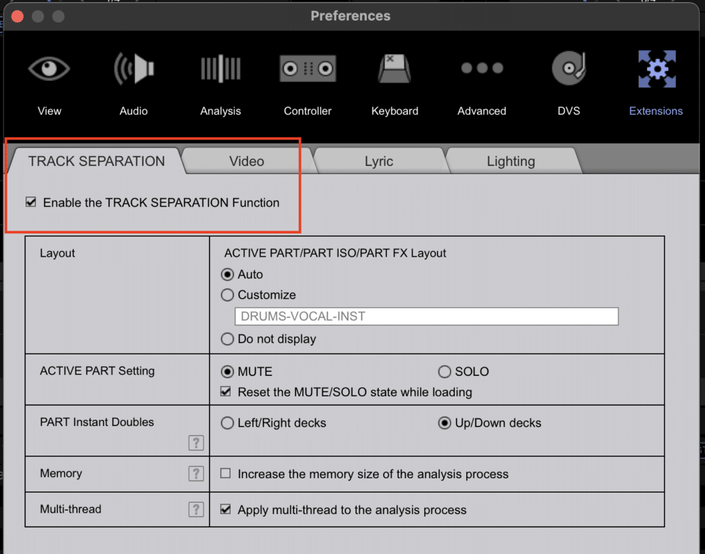 Con ese lanzamiento, ya están disponibles para todos los DJ que ya posean un controlador compatible con Rekordbox gracias al mapeo MIDI. Antes de empezar, actualiza a la última versión de Rekordbox y activa Track Separation Technology en la pestaña de extensiones de los ajustes de Rekordbox.