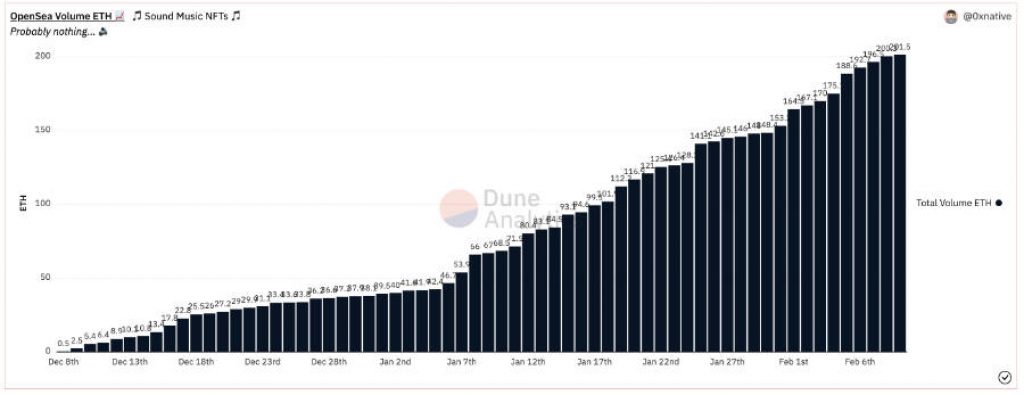 Si quiere profundizar en los datos del mercado en tiempo real aquí tiene más información: https://dune.xyz/0xnative/Sound-Music-NFTs